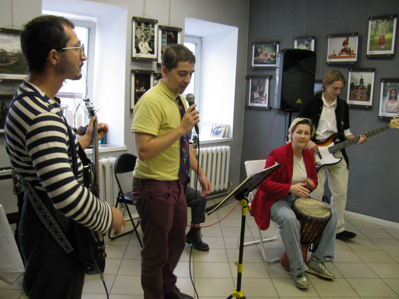 Открытие выставки продолжилось концертом группы «Квартира 21», в состав которой входят шесть талантливых музыкантов: Федор (вокал), Антон (электрогитара), Соня (перкуссия), Тамила (акустическая гитара), Ваня (бас-гитара). Софья и Иван – это дети Надежды. А сама талантливая мама поразила зрителей своей игрой на барабанах. Выступление группы с композициями «Перемен», «Старый Отель», «Никто меня не любит, никто не понимает» вызвало бурю оваций.