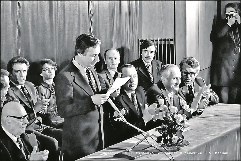 Александр Боронин среди коллег в период становления Пущино (Фото: Е. С, Бугаенко. Оцифровка А. Ю.Иванов)