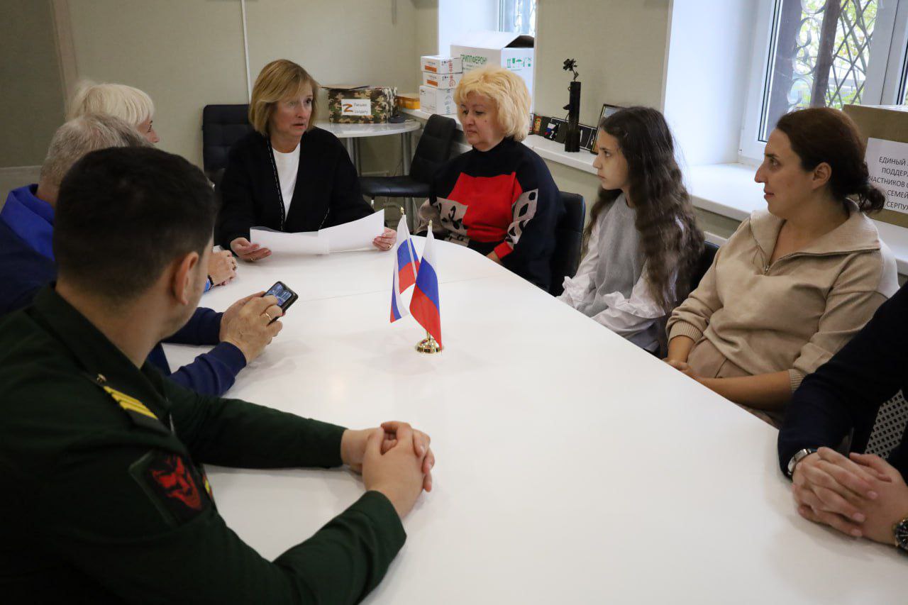 На встрече в Центре присутствовали руководитель общественной приёмной Серпуховского местного отделения партии «Единая Россия» Вадим Моторин, заместитель руководителя Ассоциации ветеранов СВО Александр Худобкин и депутат Совета депутатов Серпухова, председатель Совета сторонников партии «Единая Россия» Надежда Ерёмина.