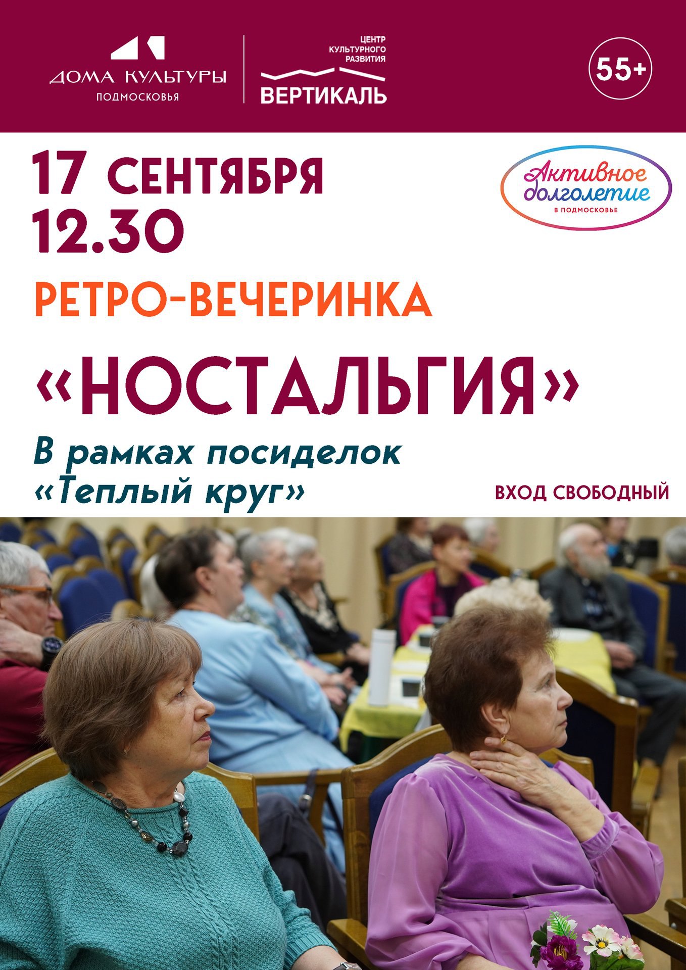 В Центре культурного развития «Вертикаль» состоится ретро-вечеринка «Ностальгия», для тех, кому от 55 лет.